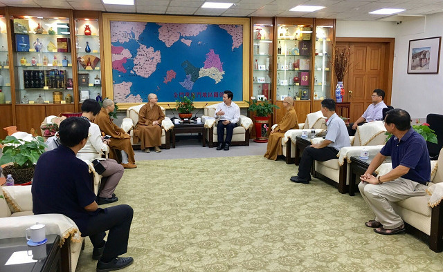 如常法師進一步表示,雙方2年來善的緣合,日前亦特別分享該館每年世界神明朝山聯誼會5萬人潮的活動盛況!邀請陳福海縣長率團參加12月25日在佛陀紀念館舉行「2017世界神明朝山聯誼會」,同時能進一步為佛館與金門文化園區史博館結為友好姊妹館揭牌。