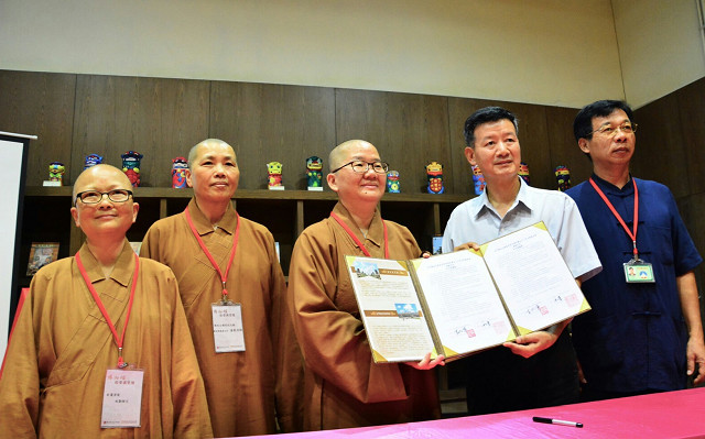 金門文化園區管理所所長盧根陣也為簽署協議致賀表示,與佛光山佛陀紀念館成為一家人,雙方結為友好姊妹館深具意義,這是一份榮耀,感謝一路以來,館長如常法師的因緣協助,星雲大師、慧傳大法師加持至今,得使能締結如此良緣福報。