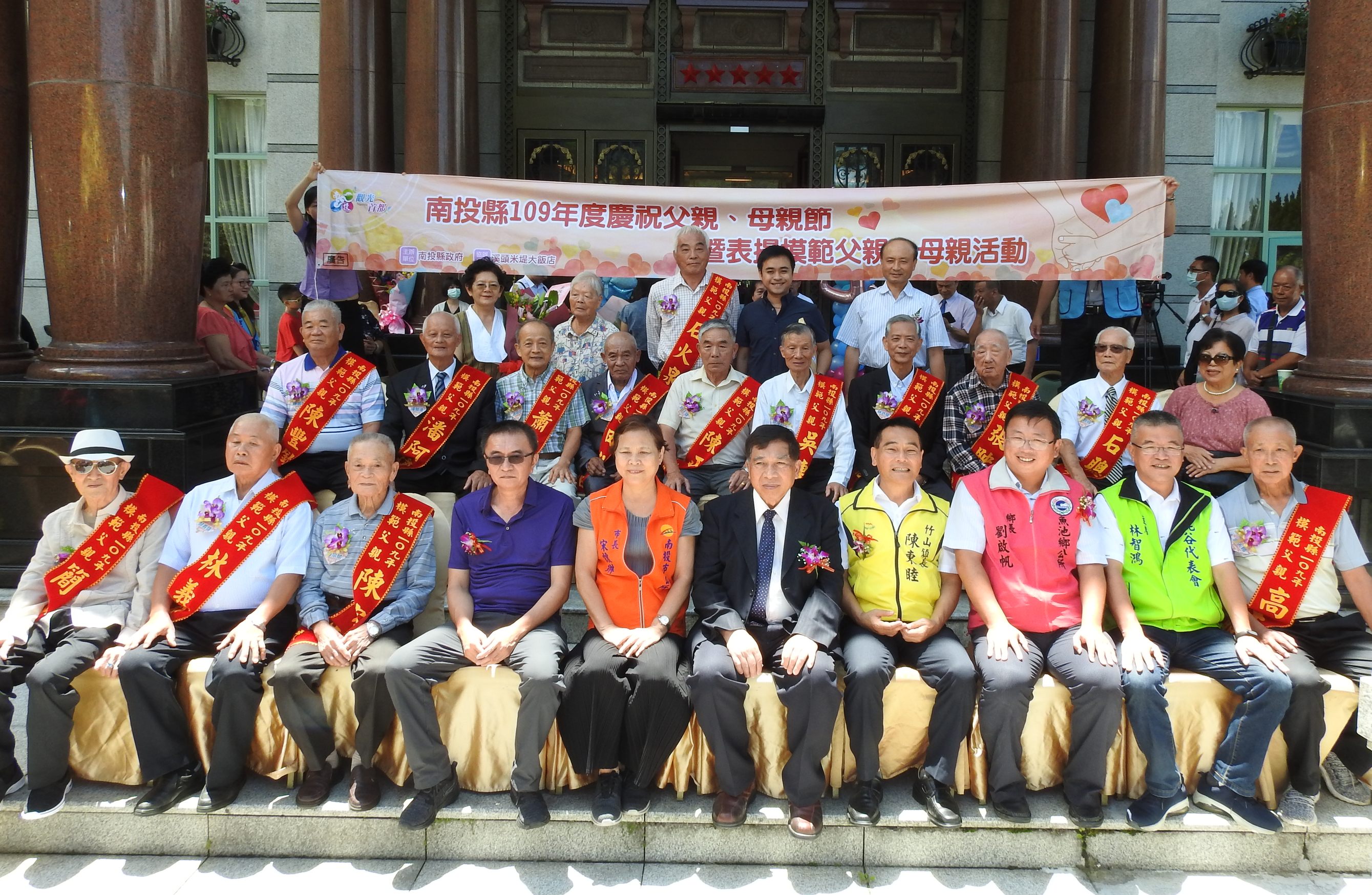 【本報訊】因應新型冠狀病毒(COVID-19)防疫考量,原訂於5及8月分別舉辦的南投縣109年模範母親、模範父親表揚大會,合併於父親節前夕6日,在溪頭米堤大飯店擴大聯合辦理。表揚大會在富州社區協會精彩歌舞表演中揭開序幕,包括高齡97歲的林陳娥等16位全縣模範母親及95歲張映川等15位全縣模範父親,熱鬧風光走上星光大道進場,並逐一接受祝福與表揚,場面歡樂溫馨又感人。