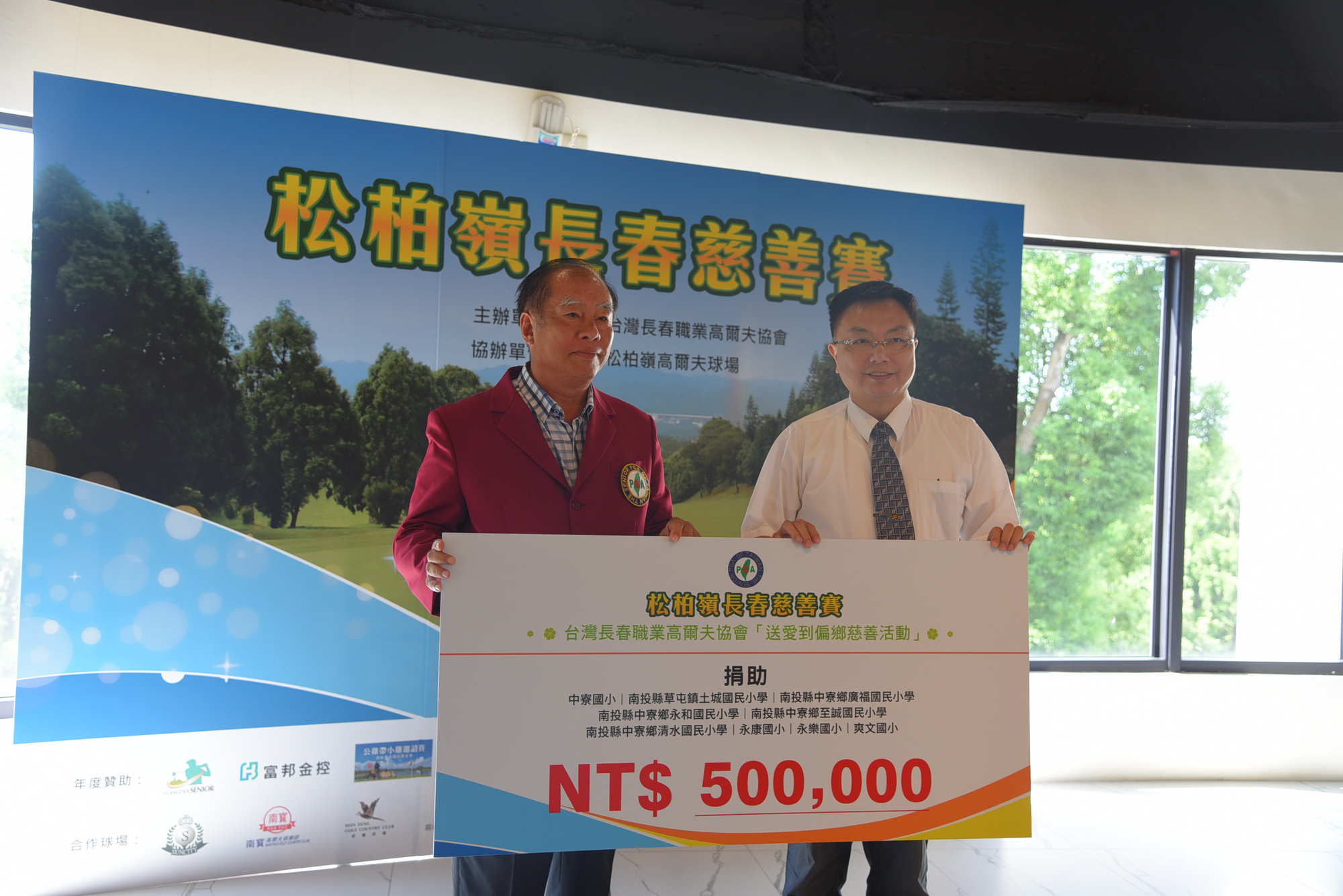 陸處長感謝松柏嶺高爾夫球場集體協力聯合高爾夫界同好,自106年起踴躍捐贈獎助學金助學,總金額達200多萬元,協助中寮鄉8所小學及草屯鎮土城國小,協助學童學業、各式競賽及語文能力發展等所需,發揮扶助弱勢、支持家庭功能完善,協助學童圓夢。