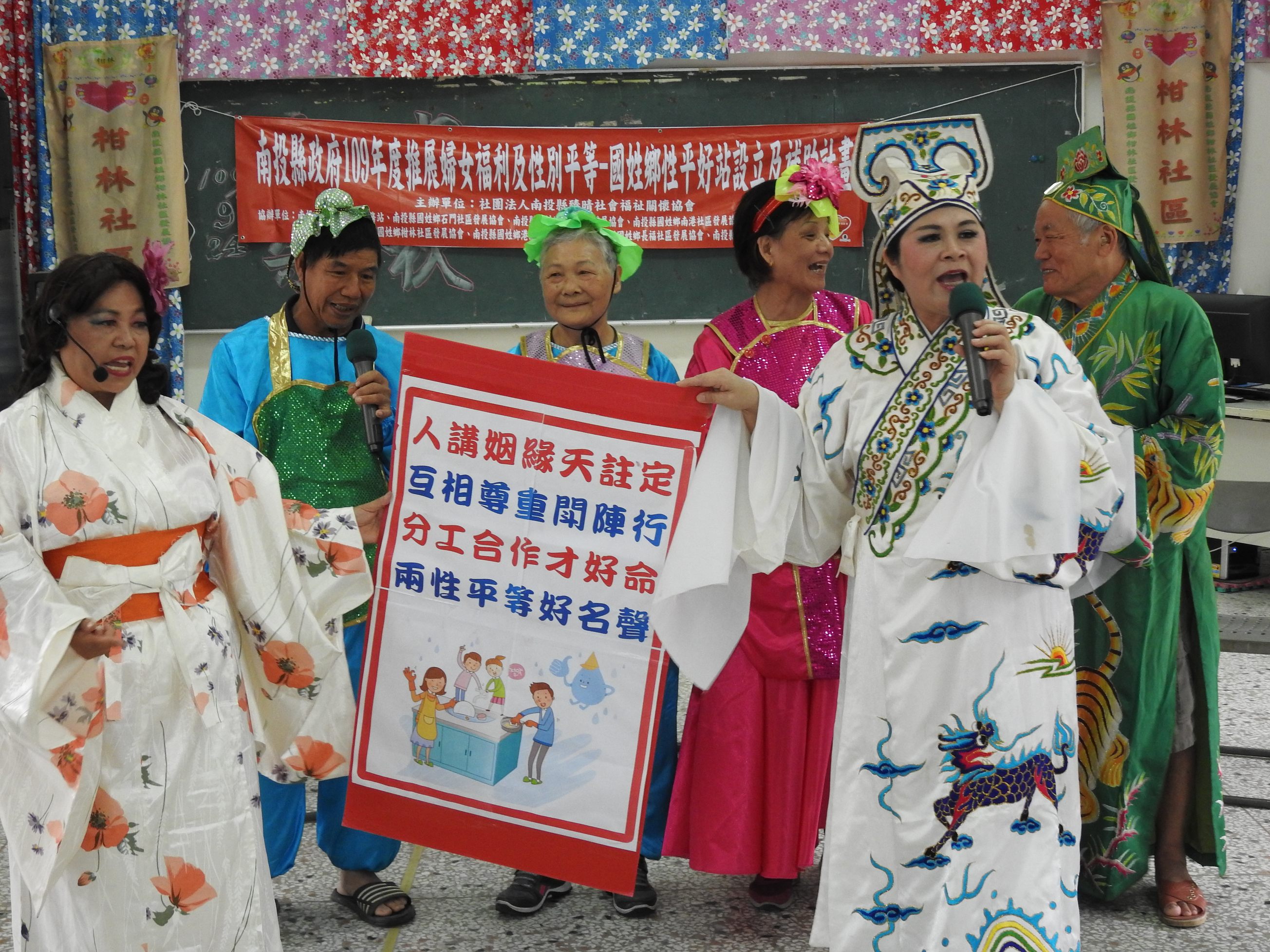 也參與演出的66歲彭春源說,演歌仔戲還是生平第一遭,卻是自己笑到翻,但也深刻體認到家中老婆辛苦一輩子的委屈,更知道以後幫忙倒垃圾、洗碗就能讓家庭更和樂,這不就是性別平等的重要真締與效益嗎?而且透過有獎徵答,也讓大家知道維護性平防範家暴不能自掃門前雪,多一點管閒事的熱心,善用113保護專線通報,既能讓社福專業社工介入也不怕自己的身份洩漏。