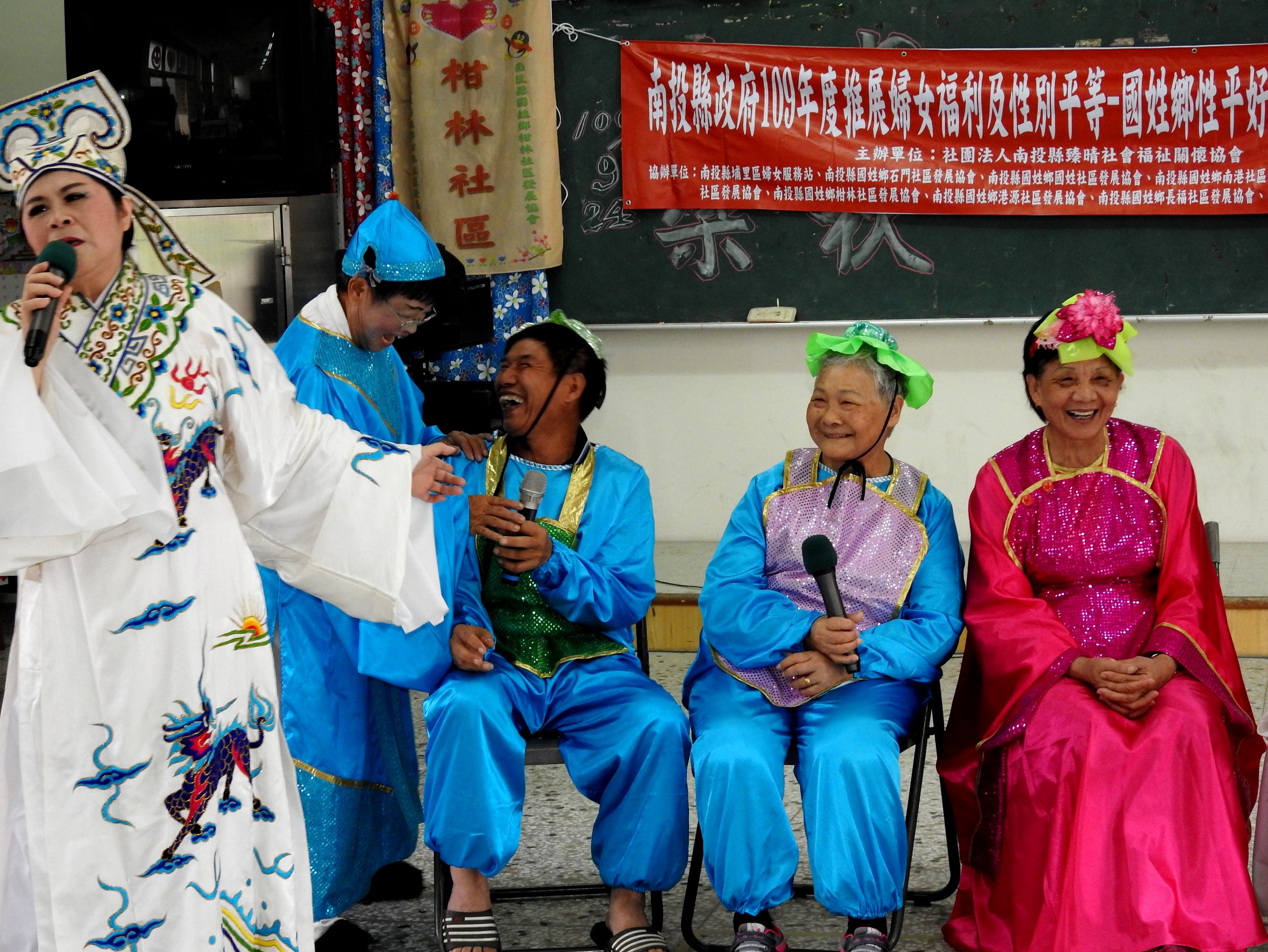 【本報訊】「粉墨登場唱歌仔戲,帶給大家歡樂,還能讓家務分工男女平等的觀點,真實演出來,讓大家看在眼裡笑在臉上感受在心裡!」,國姓鄉81歲的賴杏香阿嬤,25日參與柑子林社區性平好站的歌仔戲性平行動劇演出後,開心又肯定的這麼說。