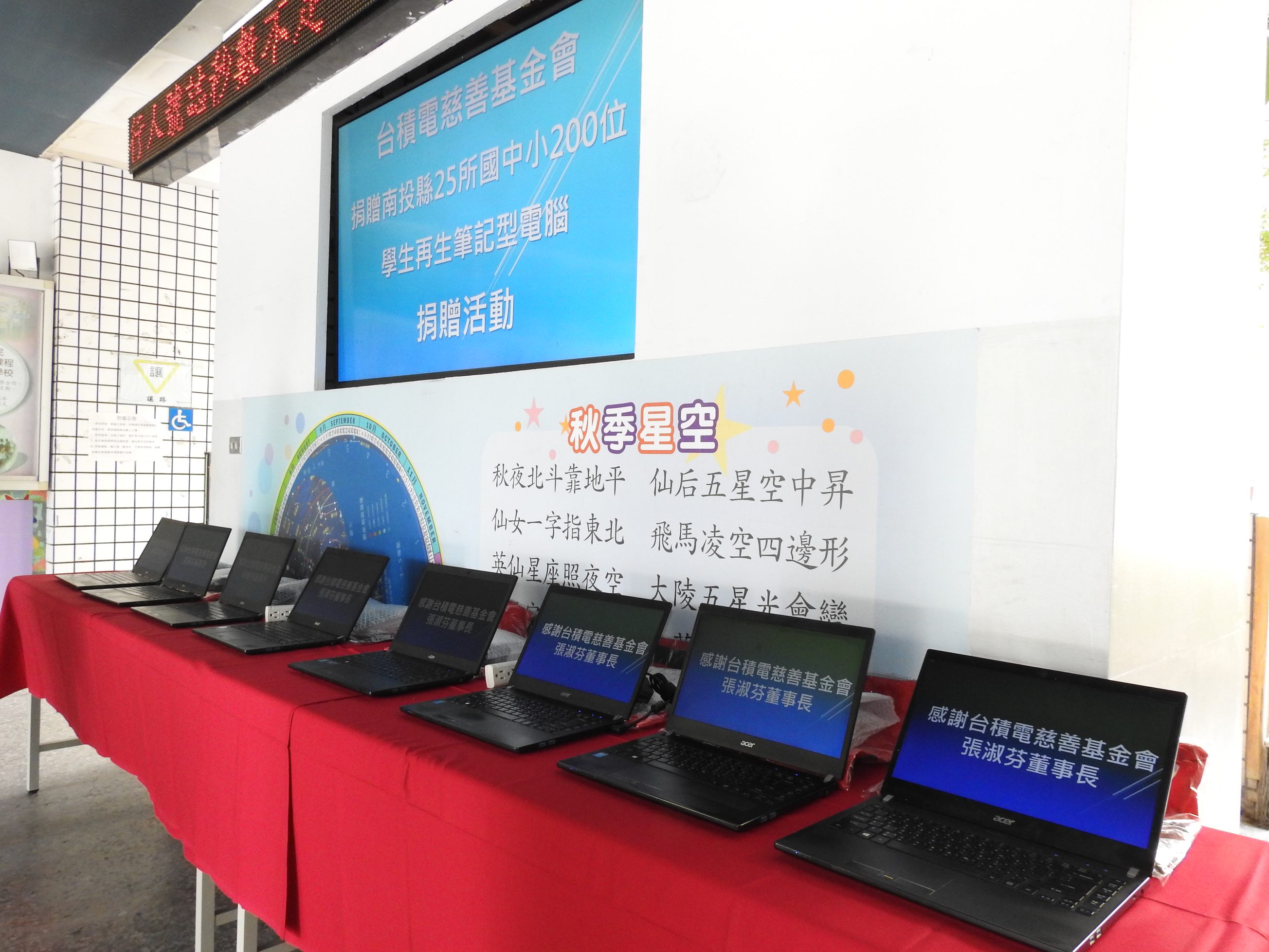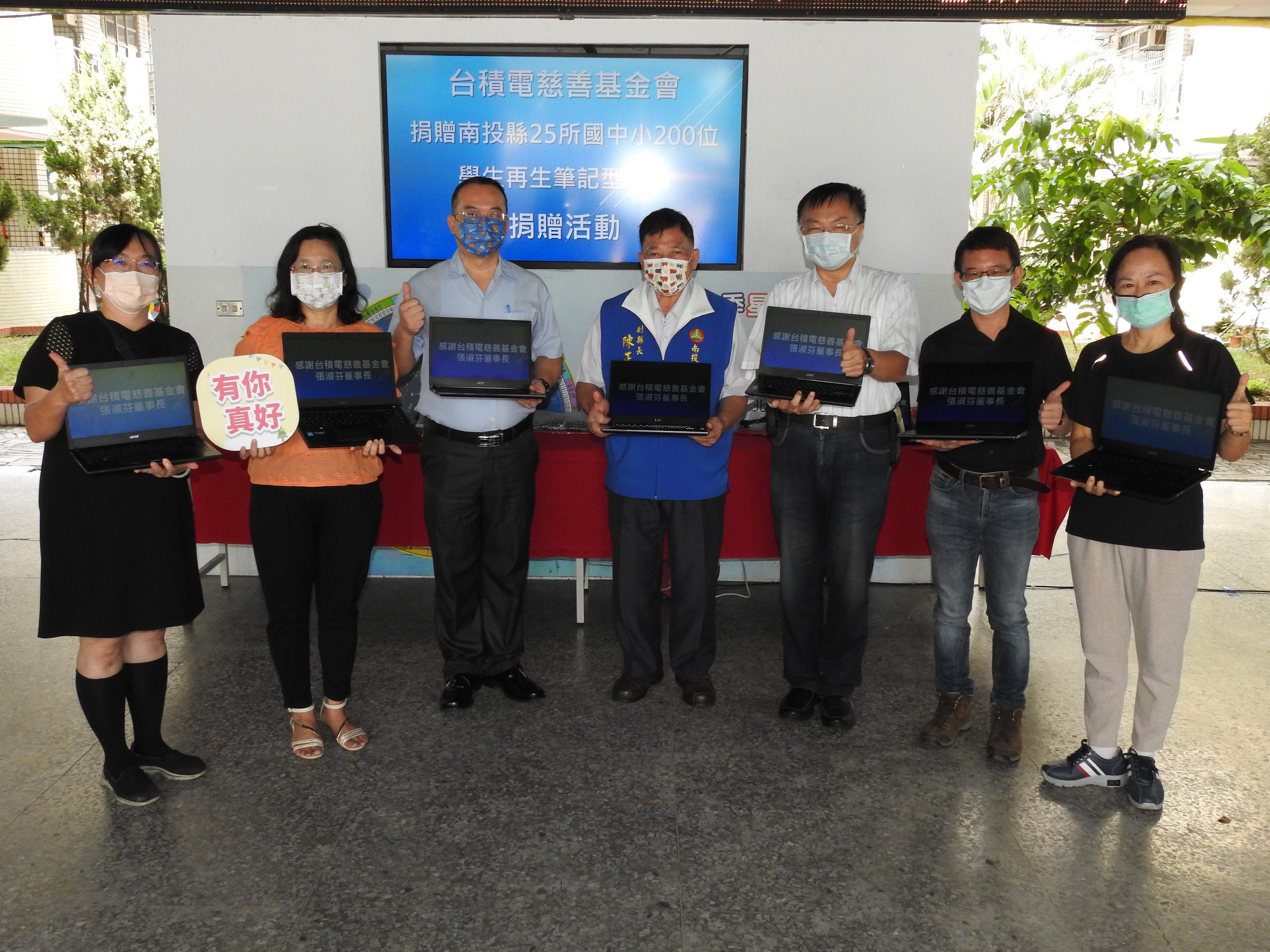 陳副縣長指出,教育部宣布全國各級學校及課後照護機構配合停課到7月2日,但學生仍須在家中進行遠端線上學習。台積電慈善基金會張淑芬董事長長期支持偏鄉教育議題,先前已在南投縣信義鄉雙龍國小資助教學資訊設備及網路分享器等,此次更募集200台再生筆記型電腦計捐贈南投縣25所國中小弱勢家庭學子,鼓勵學生善用筆記型電腦勤奮向學從暑假開始在家線上無礙持續學習。
