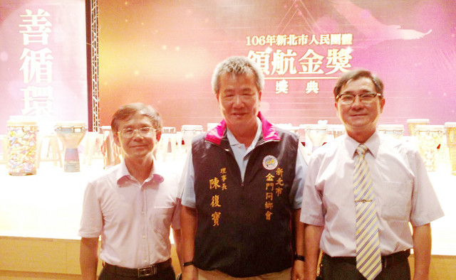 【記者于郁金/新北報導】新北市金門同鄉會日前榮獲新北市政府「領航獎」殊榮,由新北市市長朱立倫親自頒發獎項,該會理事長陳復寶、副理事長林興源、秘書張國森出席頒獎典禮。