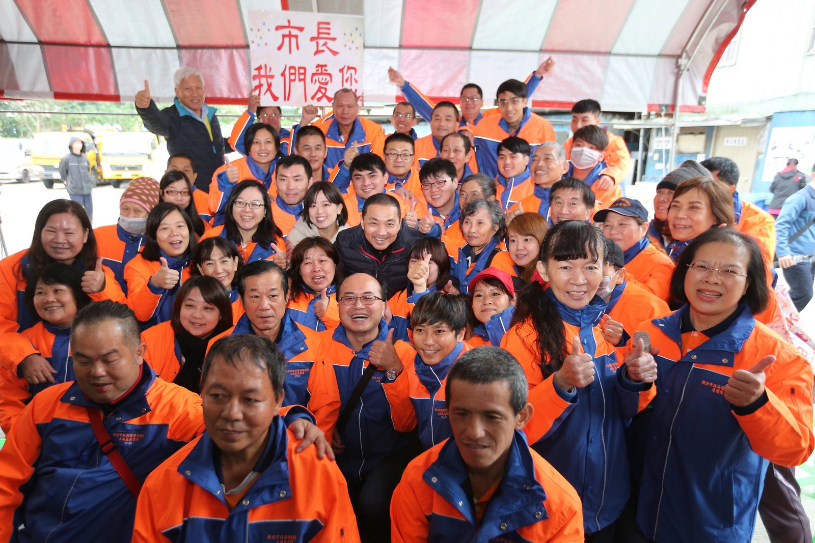 侯市長稱清潔隊員是站在第一線的清潔戰士,是環境衛生的保衛者,更是新北市的根本及力量,深受大眾肯定與感謝;大家的努力讓新北市連續七年獲得全國最乾淨城市,明年元旦起,外勤清潔隊獎勵金將調高為八千元,請環保局動用待遇準備經費,也拜託議會支持,讓新北市愈來愈好。