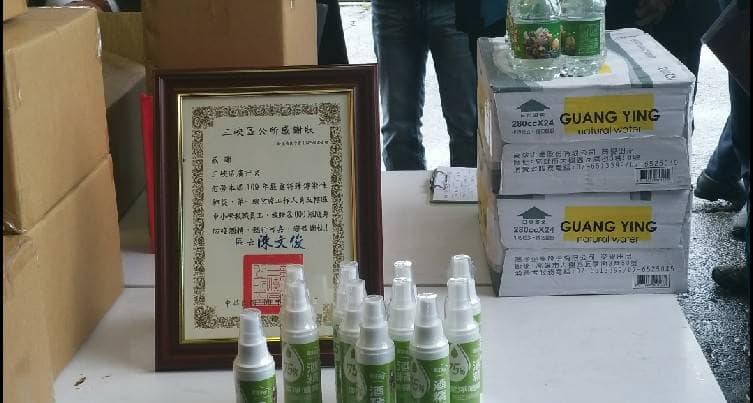 另廣行宮住任委員黃騰霆說,為維護防疫人員的健康與安全,捐贈3,000瓶隨身防疫酒精予轄區內各中小學教職員工及公所同仁,隨時做好手部清潔消毒工作,杜絕病毒殘留。讓第一線辛苦的防疫工作人員,能在執行防疫工作的同時也可以保護好自己三峽區公所為感謝福安宮及廣行宮的愛心及善舉,特於4月24日回贈感謝狀以表敬意。