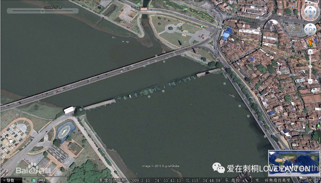 注:衛星地圖所示,上為新順濟橋,下為倒塌的順濟古橋,北連中山南路。