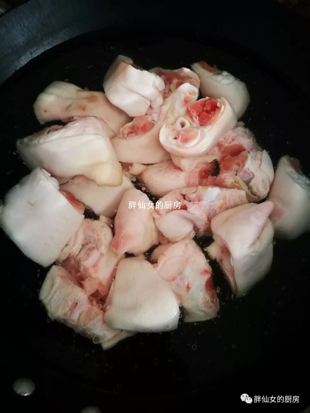 1、豬蹄涼水下鍋,燒開後撇去浮沫,再煮2-3分鐘。