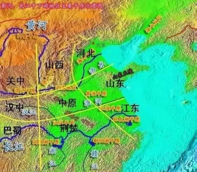 東南,為淮河上游地區。此地最大的特點,河流眾多,淮河、汝河、潁河、渦河、汴河等等,水運發達,堪稱中原水系的命脈所在。我們知道在古代,河運極其重要,走水路比走陸路便宜太多。因而掌握這片地區,對於本國經濟發展至關重要。又加上南面靠著大別山,是中原少見的有所屏障之地。