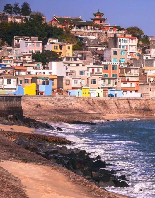 4.這裡有馬卡龍色房子,是新晉的網紅拍照地,古鎮上靠海的房子,被漆成了馬卡龍色,繽紛的色彩,讓質樸的古鎮多了幾分小清新。愛拍照的小姐姐,來東山島,可得記得來這兒凹造型打卡。