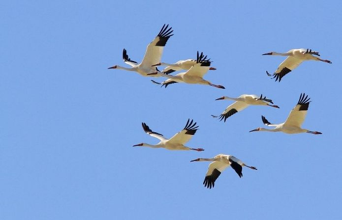 2000年11月17日深夜,熟睡中的張厚義突然聽到寂靜的天空中傳來一陣陣歡快的鶴鳴聲,他以為自己又在夢中,翻過身又酣然睡去。誰知第二天一早,他推開門一看,只見自家屋邊的湖邊和蘆葦叢里白茫茫的一片,在一陣“咯咔咯咔”聲中,數百隻白鶴紛紛起飛,劃破長空,頓時天空一片雪白。突然,3隻白鶴離群朝張厚義直飛過來。飛飛一家又回來了,而且還帶來了數不清的白鶴和各種候鳥。