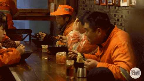 大家邊吃邊聊得不亦樂乎,在熱乎美味的麵條裡,他們放下了一天的疲憊,盡情享受此刻美食帶來的慰籍。