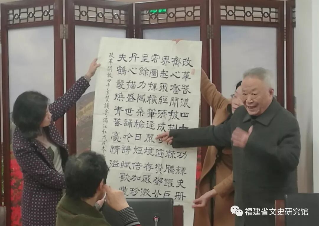 座談會上,黃樹清館長通報了2018年省文史研究館工作情況及今年工作打算。他說,2018年,省文史研究館在省委、省政府、省政協的領導下,深入學習貫徹習近平新時代中國特色社會主義思想和黨的十九大精神,樹牢“四個意識”,堅定“四個自信”,堅決做到“兩個維護”,強化抓班子帶隊伍政治責任,以新擔當、新作為推動建設“有特色高水平政府諮詢機構”和建設“有為、包容、和諧、開放”的目標,踐行“敬老尊賢,崇文尚德”宗旨,不忘初心、牢記使命,充分發揮文化名人高地優勢,緊緊圍繞全省文化建設重大部署,積極組織文史館員大力開展文史研究、存史諮政、書畫創作、文化交流活動,致力文化強省,產生了廣泛的社會影響。一是推進重點工程,擴大文史工作社會影響。聚焦存史資政、不忘初心,館員們牢記周恩來總理提出的“把知識和經驗留給後代”的囑託,做到了“胸中有大義、心中有人民、肩頭有責任、筆下有乾坤”,撰寫了許多力透紙背的著述,精心組織館員參加國務院參事室、中央文史研究館在全國政府參事室文史研究館系統深入開展改革開放40週年文史資料徵集活動,發揮存史資政的作用,進一步增強以文化人的歷史使命感,講好中國的故事、講好福建故事、傳播福建聲音。二是加強文史研究,促進文化諮政取得成效。圍繞黨和國家重大戰略決策部署,察實情建真言獻良策,緊扣新時代我國社會主要矛盾新變化,緊扣推動高質量發展的新要求,緊扣打贏“三大攻堅戰”與省政府工作重點、改革發展的難點和社會關注的熱點問題選題,謀福建事,講福建話。三是繁榮書畫創作,推進高雅文化走近群眾。聚焦藝術創作、多出精品,堅持開放發展、惠及於民的理念,大力開展“高雅藝術,走進機關、情系軍營、走進鄉村”等文化普及活動。大家以文言志、以畫寄情,化毫成鋒、潑墨揚魂,向更多群眾傳遞先進文化知識。