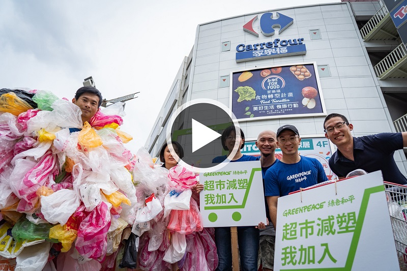 PS. 超市減塑,需要更多人一同出力。週末,綠色和平志工走訪10間超市,集結200位顧客之力,將多餘塑膠包裝送還給超市。