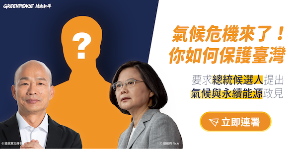綠色和平氣候與能源專案小組/PS. 綠色和平從不接受政府或企業的捐款,唯有您的支持,才能讓環境守護與能源改革的工作得以持續。捐款支持,資助行動及全球動員,並幫助國際倡議工作。