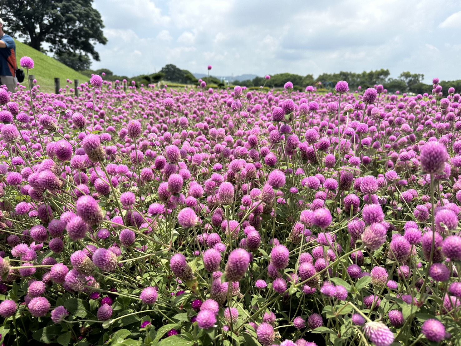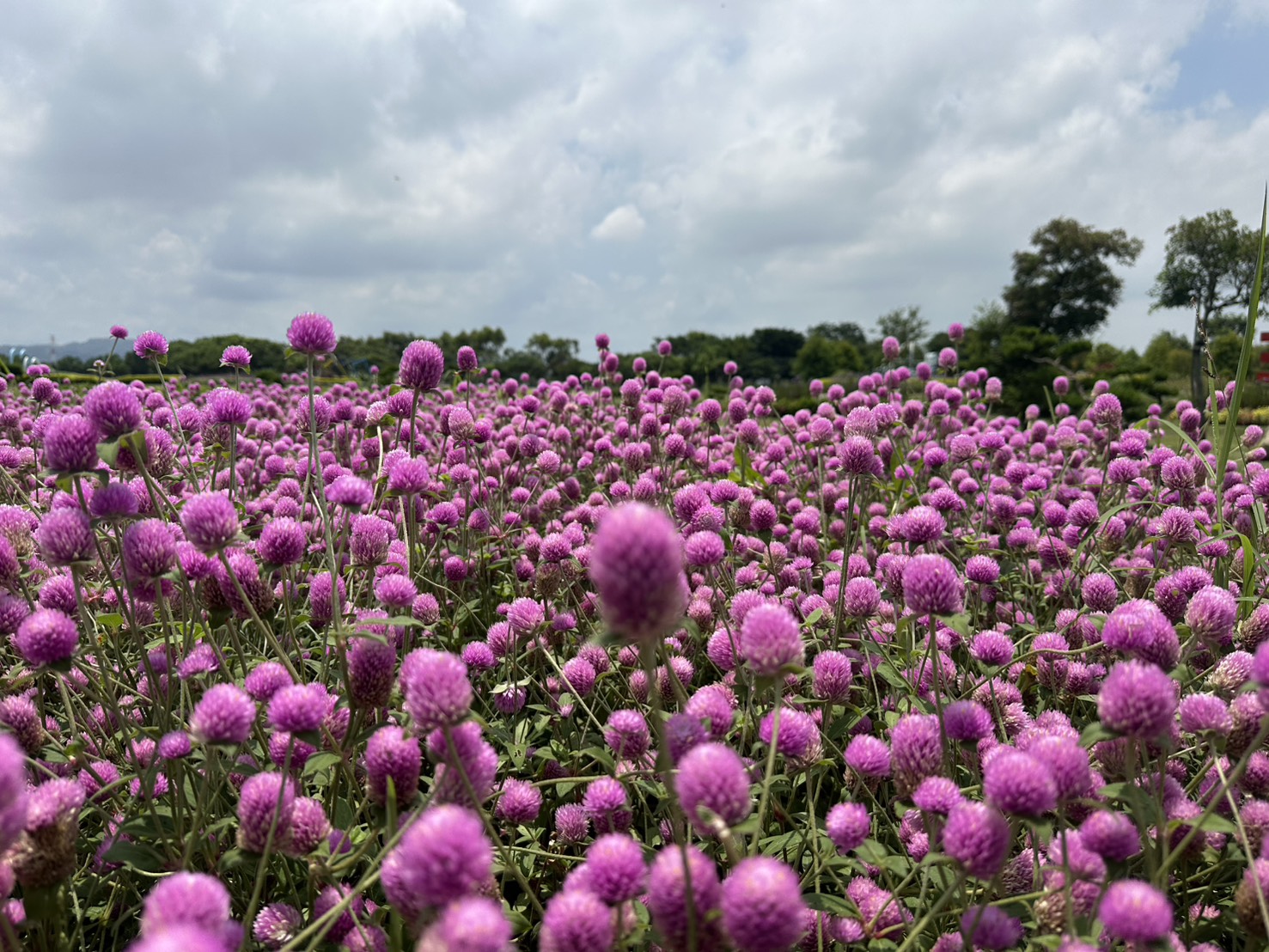 [本報訊]台中市后里環保公園在今夏化身浪漫花海,由粉紫色的千日紅接力綻放,為綠意盎然的園區注入繽紛活力與濃濃夏日氛圍。市府建設局特別規劃約30平方公尺的主題花區,精心種植多達1,000株千日紅,並巧妙搭配藍天白雲與翠綠草地,營造如童話般的夢幻景致。浪漫唯美的花海吸引許多情侶、親子家庭與攝影愛好者前來打卡拍照,預估花期將持續至七月底,是今夏不可錯過的熱門賞花景點。