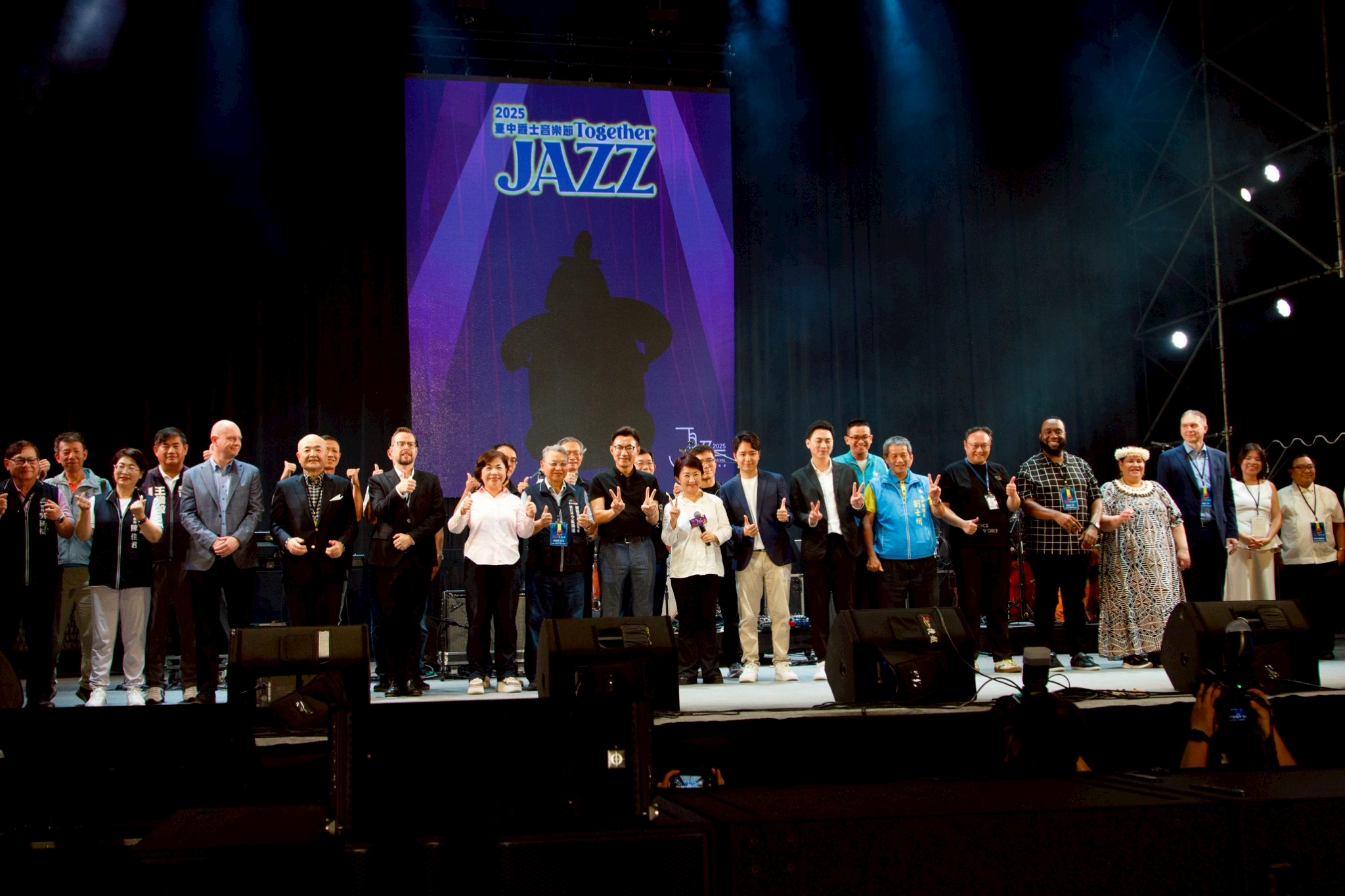 [本報訊]「2025台中爵士音樂節」10月17日至10月26日盛大登場,迎來第21屆音樂盛典!今年規模再創新高,邀集15個國家的頂尖爵士音樂家齊聚台中,組成跨國限定演出團隊,帶來從經典搖擺到跨域融合的多樣風貌。「在這個美好的夜晚,語言有點多餘!」台中市長盧秀燕今(18)日出席開幕式打趣表示,歡迎大家來台中爵士音樂節,好好的享受每個夜晚,「Let’s jazz together!讓我們爵士在一起」。