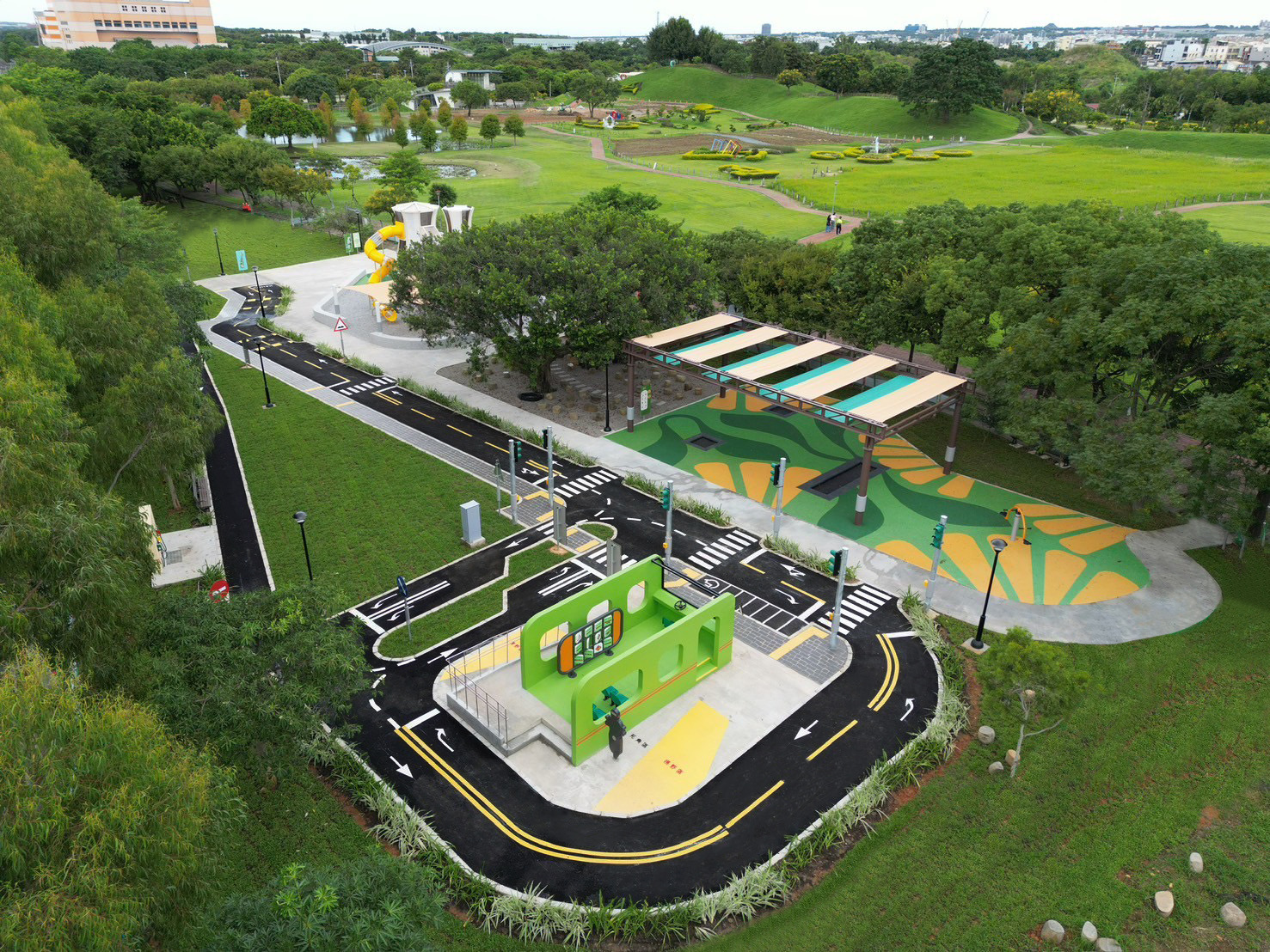 建設局長陳大田表示,「孩籽世界共融遊戲場」是市府打造共融式遊戲空間的重要成果之一,整體設計以「環保、生態、交通學習」為主軸,占地寬敞,結合地形起伏、多元材質與創意設施,適合不同年齡層及身心條件的兒童共同遊玩。設施包括攀爬遊戲塔、兒童彈跳床、多人共融蹺蹺板及交通學習區,提供兒童體驗與學習交通安全的優質場域。