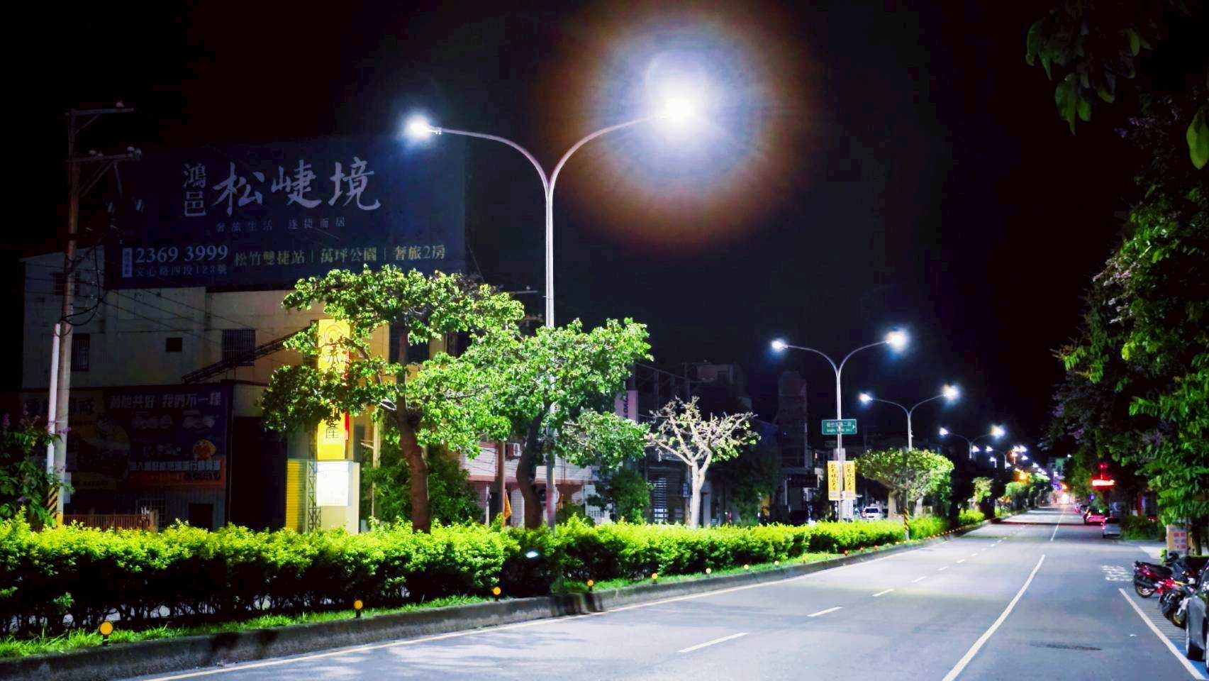 此外,建設局在推動基礎照明之餘,也兼顧城市景觀與生態需求,於特定路段營造特色光環境,並在農田周邊道路加裝遮光設計,降低對農作物生長的影響;針對具設計特色的燈具,更換燈泡方式維持整體景觀一致性,展現細緻用心的公共設計。