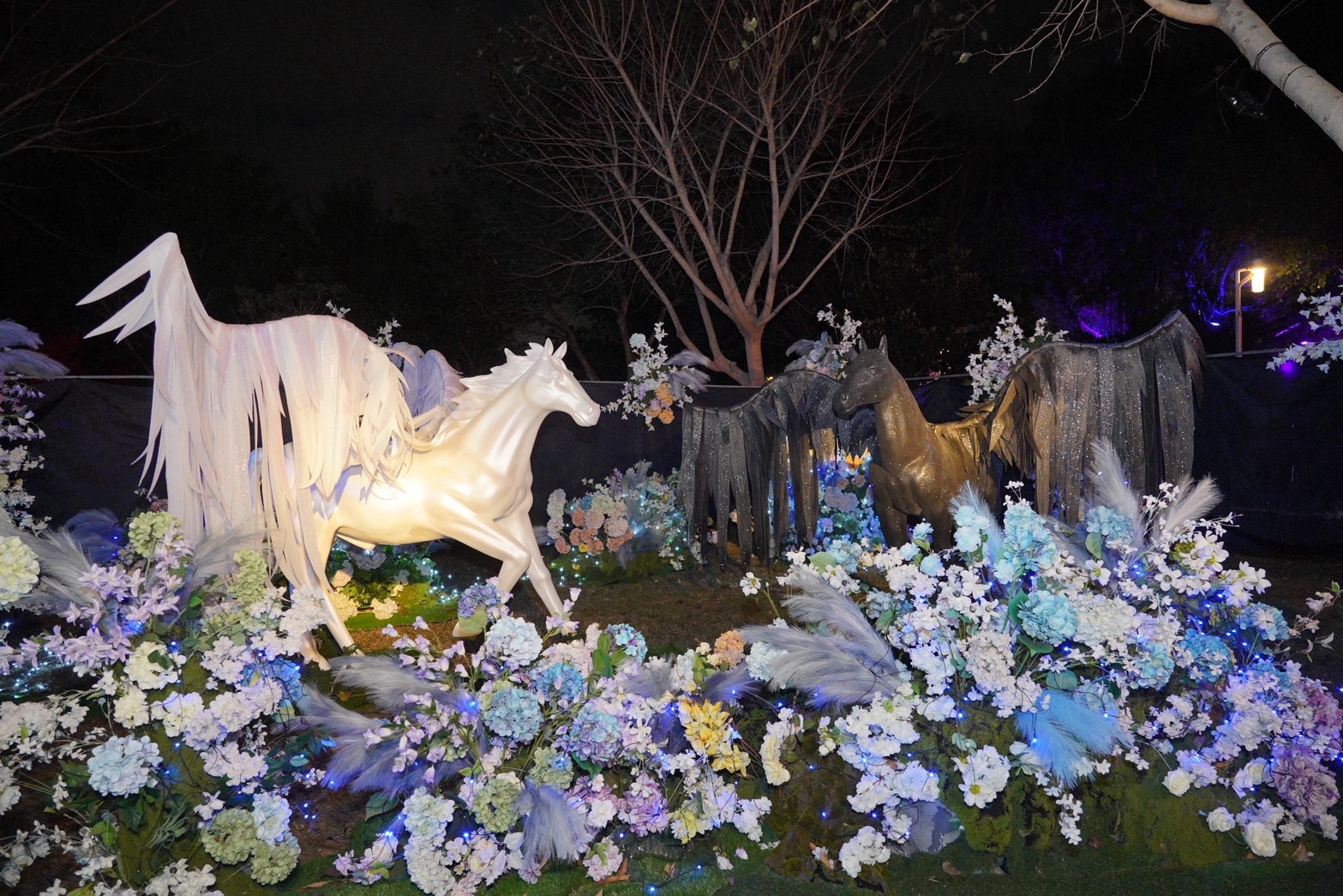 建設局說明,「驚蟄界」由曾打造高人氣燈區「龍之異次元」的策展團隊再度操刀,以「春雷喚醒大地、萬物重新萌生」為核心概念,融合工藝、花藝、多媒材裝置與聲光特效,形塑具高度沉浸感的雨林式場景;並呼應馬年意象,注入動感與能量,讓民眾在行走燈區時,彷彿親身感受春天甦醒的節奏。