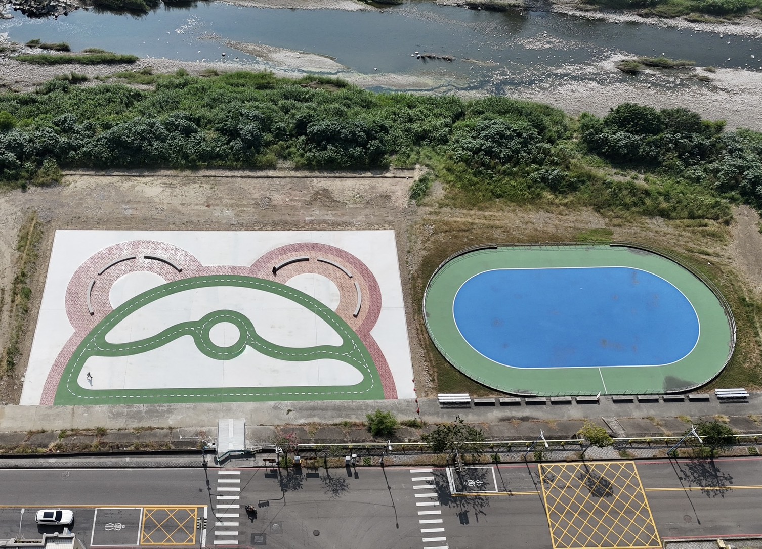 另一處大里十九甲頭汴坑溪高灘地活動廣場於113年10月完工開放,成功活化在地河濱空間,整體面積約2,100平方公尺,其中最吸睛的是青蛙造型滑步車道,將自然意象與童趣設計融入場域,讓孩子在探索與騎乘中親近水岸環境,也讓原本以防洪為主的高灘地,轉化為充滿笑聲的生活空間,為大里地區再添一處適合全齡共享的戶外休憩場域。