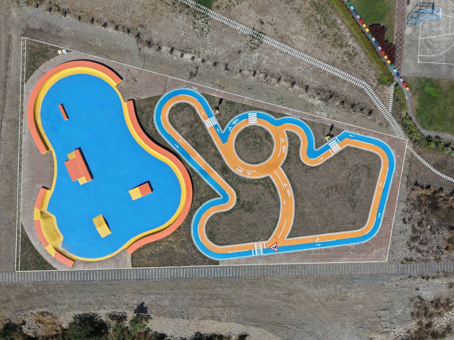 位於大里塗城地區的「草湖溪滑步車道暨滑板車廣場」於114年12月完工,並於今(115)年1月正式開放,規劃約2,500平方公尺活動空間,鋪面採繽紛活潑設計,融入紅綠燈、道路標誌等交通號誌元素,讓孩童在遊戲過程中自然建立交通安全觀念,在奔跑與騎乘之間學習守規矩,家長也能安心陪伴,共同享受親子互動時光,打造結合運動、學習與休閒功能的河濱新據點。