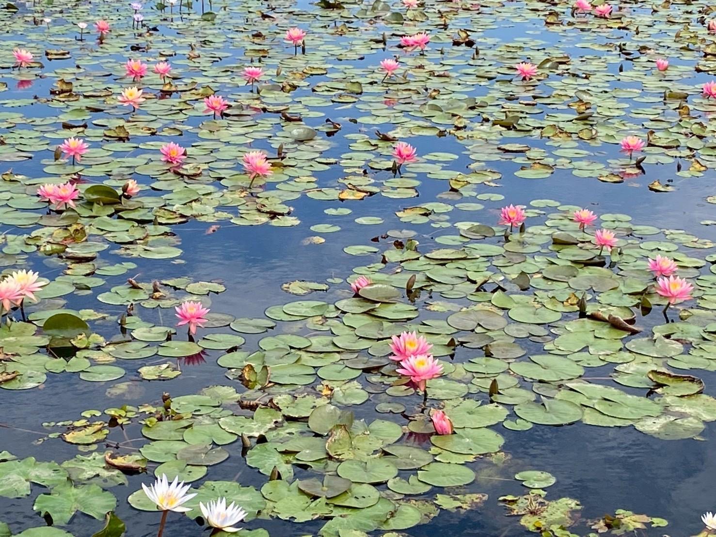 說明,后里環保公園內正值盛開季節的「蓮花」象徵純潔與高雅,盛開時紅蓮熱情奔放、粉蓮柔美典雅、白蓮清麗脫俗,在陽光映照下更顯動人。清晨微風輕拂、花影搖曳,是最佳賞花時段;傍晚霞光映照池面,也別具風情。滿池蓮葉層層鋪展、花朵錯落綻放,吸引攝影愛好者與親子家庭駐足欣賞,成為春夏之際熱門的踏青景點。