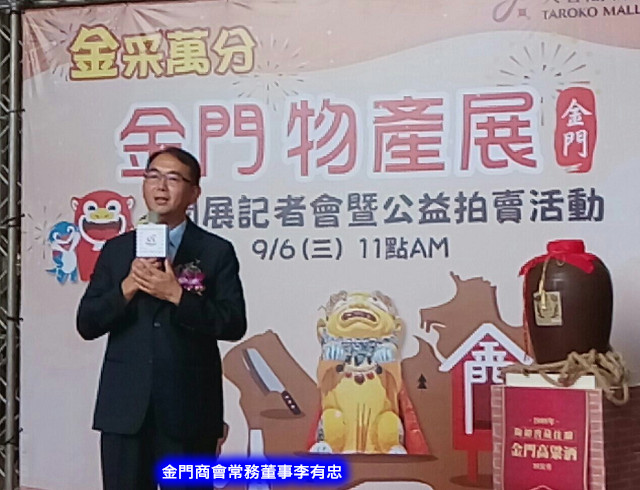 金門商會常務董事李有忠強調:此次特展匯集14個金門優質品牌,百種金門特色商品,並集合好酒、鋼刀、貢糖、牛肉乾、手工麵線等特色伴手禮,包括享有盛譽金門高粱提供數十種醇厚佳釀,飄著濃濃甜味貢糖、金門招牌砲彈鋼刀、遵古法製作一條根商品等金門優質伴手禮。