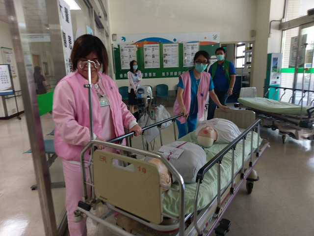 【記者于郁金/臺中報導】10月20日下午豐原醫院急診室進行「大量傷病患演習」,模擬國道高速公路南下豐原端發生一起遊覽車翻覆意外,造成42名乘客,有20人因此受傷,緊急送到醫院救治,考驗醫護人員應變。