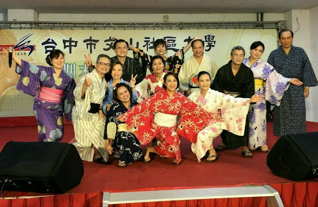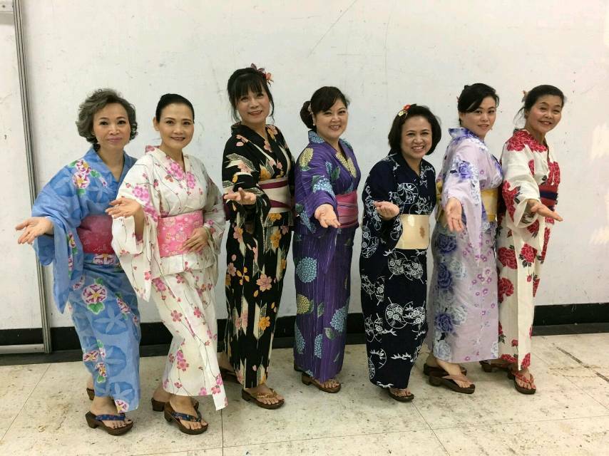 畢業於日本流通大學龐淑娟老師,有多年豐富教學經驗,今年首次開設日文歌輕鬆唱課程,受到學生們喜愛,此次成果展由同學們穿上日本和服表演日文組歌曲,受到在場觀眾如雷掌聲。