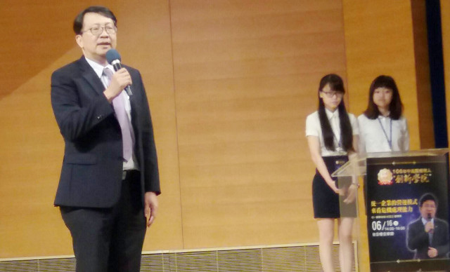 開訓後的亮點專題講座邀請統一職棒董事長凃忠正博士,分享20多年的經營管理及危機處理經驗,講述統一企業這個老字號的品牌,如何牽動著全球的消費者的目光。凃忠正董事長表示,統一企業始終以正面態度看待危機,例如前幾年發生食安問題,統一企業即興建食安大樓,成立國內首屈一指的食安中心,透過強化企業管理,讓危機的出現,轉化成企業成長的動力。