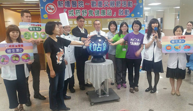 【記者于郁金/臺南報導】因應父親節的到來,新樓醫院特別與長春健康素食餐廳合作,八月在長春於臺南市的九家門市,設置「戒菸舒食健康站」專區,固定擺放戒菸相關資訊及拒菸文宣品等衛教單張,方便民眾可輕易取得資訊,7月28日在臺南新樓門診大廳與長春健康素食舉辦「戒菸舒食健康站」啟動儀式記者會,並針對戒菸者的營養攝取,由長春店經理廚師推出三道健康好食的蔬食菜單,提供民眾現場試吃,並親自示範其中一道方便製作又美味涼拌水果沙拉。