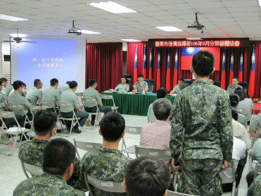 【記者于郁金/臺南報導】為有效解決官兵生活問題,並鞏固部隊向心,臺南市後備指揮部日前於本部禮堂召開9月份榮譽團結會,會議主席由後服科上士陳昱豪擔任,指揮官王之聖上校列席指導,全體官兵暨聘雇人員與會,場面輕鬆熱絡。