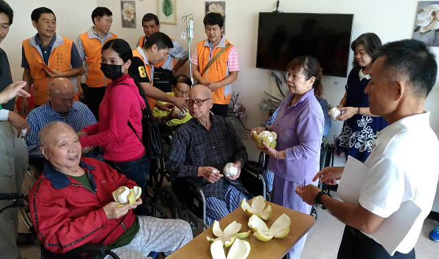 處長何興隆與榮民伯伯一一握手寒暄致意,詢問生活狀況,致贈中秋禮盒,過程中並安排剝柚子趣味活動,場面溫馨熱鬧,添增中秋佳節溫馨氣氛;當日關懷慰問榮民伯伯有謝本容、商寶世、陳森永ˋ張傳福、黃滿線、劉知保、賈宗華、黃和偉,其中賈宗華是永康區大灣路華安診所醫師,其妻陳翠霞還是前金馬自衛隊隊員,歷經823砲戰。
