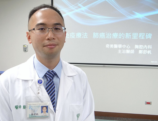 【記者于郁金/臺南報導】近年來,隨著空氣品質的惡化以及標靶藥物的進步,肺癌每年新診斷以及持續治療的人數已節節上升;肺癌連續多年位居國人癌症死因的排名第一,而臺灣肺癌適合免疫療法之平均半年存活率可達80%。奇美醫學中心胸腔內科主治醫師鄭舒帆表示:目前也有許多臨床研究結合了免疫療法和化學治療、標靶治療等等,而已經有臨床試驗顯示免疫療法合併化學治療效果更好。