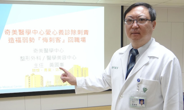 有俠義心腸黃國峯表示,給年輕人希望,社會將更有希望,奇美醫院醫學美容中心透過義診公益活動,關懷年輕人,並計畫每年將持續與社福及學校單位合作,開放5個名額接受免費全程去除刺青治療,促使年輕人能獲得人生重新的開始,與職場上嶄新的機會。(照片由奇美醫學中心提供)
