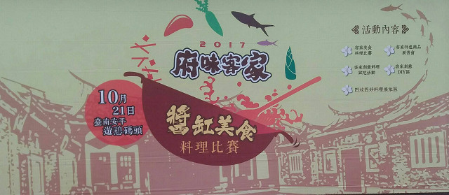 「2017南區客家美食料理比賽-府味客家~醬缸美食」決賽於10月21日臺南安平遊憩碼頭舉辦,主辦單位臺南市政府長期致力推廣客家文化,今年更廣下英雄帖,號召全台各地料理達人爭相較勁,本屆總獎金更高達31萬元,決賽中高手如雲競爭激烈,從熱烈報名的30組隊伍中初審徵選,每組各有10組隊伍入圍決賽,10月21日歡迎大家一起來活動現場,為入圍隊伍加油打氣!