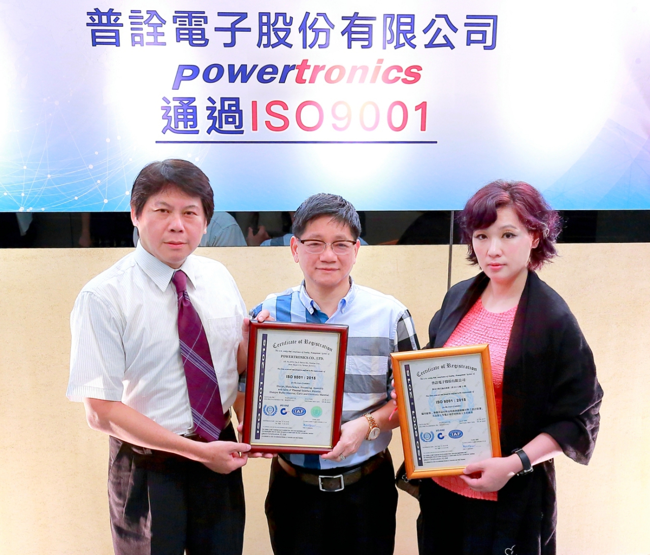 近年來朝集團化拓展的普詮電子,日前與旗下國碩電子、普詮生技股份有限公司等,聯袂取得ISO 9001品質認證,為獲得臺大廠訂單多了1張保證書;據了解,有了ISO 9001品質認證,對於建立制度、管理品質及標準化,甚至是增升業績,都頗有助益。