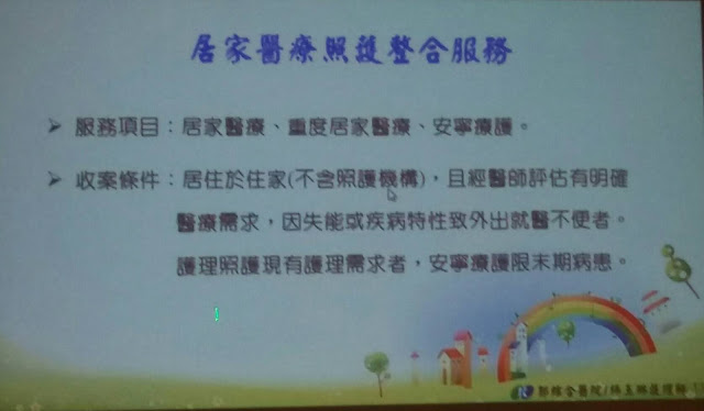 臺南市郭綜合醫院居家護理所為建構連續性的社區整體照顧服務體系,加入居家整合醫療照護,以家庭為單位、社區為導向,提供預防照護、醫療照護、長期照顧,以提升社區整體照護體系量能。