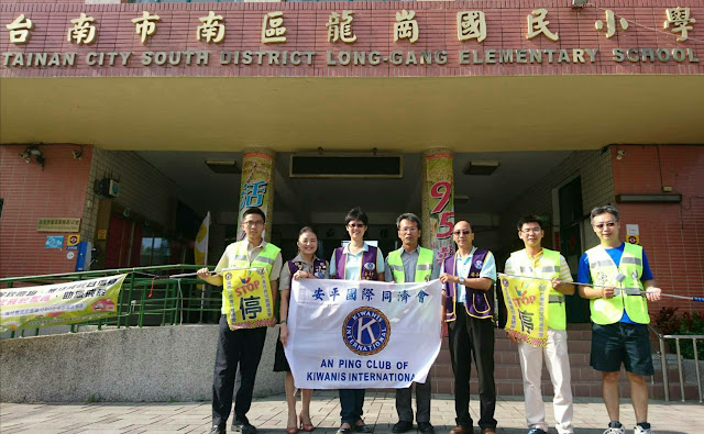 曾在龍崗國小校內全體師生舉辦「大愛童心影展」,而對安平同濟會不陌生的陳彥良校長,熱心的親自帶領安平同濟會一行人在校門口,實地仔細說明學生上放學交通動線與實施情況,並提到校門口附近人家門口的長者,有需要幫忙都會熱心主動協助學校。