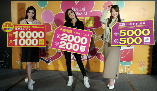 今年各百貨週年慶主戰力化妝品,百貨龍頭新光三越強勢祭出化妝品區10年以來史上最低滿千送百門檻─「滿 2000送200電子贈品禮券」。新光三越表示,看準今年美妝強勢唇彩商品當道,台南新天地獨賣GIORGIOR ARMANI推出限量唇露,以及獻上限量6折SKII經典青春熱銷組、限量50組ESTEELAUDERANR棕心發燒組,明星商品特潤修護為主,搶攻趨勢唇膏與肌膚保養商機;再搭配兩大新光三越聯名卡首4日化妝品區加碼禮券大放送,超多回饋超有感。除了化妝品,名品單櫃/大家電/法雅客+【i】store,祭出首7日持新光三越貴賓卡消費滿10,000送1,000電子贈品禮券,多重優惠輕鬆累積滿滿回饋。