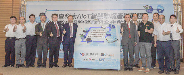 【記者于郁金/臺南報導】南臺科技大學AIoT智慧聯網產學聯盟企業夥伴意法半導體亞太有限公司、優納比網路股份有限公司、與佐臻股份有限公司等三家國際企業,為落實於日前所簽訂之產學合作備忘錄,11月9日於南臺科技大學舉辦研發設備捐贈暨產學合作啟動記者會,希望能結合南臺科大研發能量,並整合物聯網與人工智慧的創新服務趨勢,共同與學術界邁向人工智慧結合物聯網之未來商機。