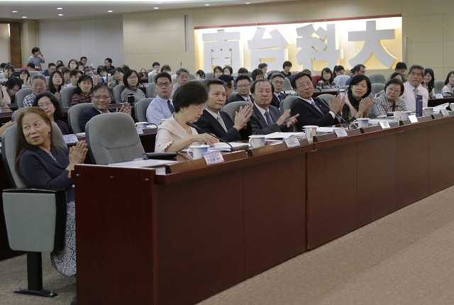 主辦單位表示,今日論壇的源起,源自於賴清德行政院長於臺南市市長任內,與當時為南臺科技大學校長戴謙(現今中油董事長)之共議,欲為臺南市建立全方位的區域食安聯防網;其行動方案之一,是辦理一場集結產官學提高共識的論壇,期望以此傳遞政府理念、獲得學界公平客觀的論述、及瞭解業者心聲與因應做法,在有相互理解與支持的聯手下,讓臺南市食安管理議題更上一層樓。(照片由南臺科技大學提供)