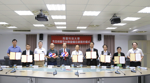 【記者于郁金/臺南報導】南臺科技大學日前與臺南市食品安全自主管理聯盟協會於南臺科技大學共同舉辦「南臺科技大學食品檢驗平台聯盟備忘錄簽署儀式」在臺南市政府衛生局李盈霖科長及與會貴賓的見證下正式簽屬合作備忘錄,由南臺科技大學盧燈茂校長、臺南市食品安全自主管理聯盟協會張鴻德監事、行政院農業委員會畜產試驗所黃振芳所長、國立成功大學永續環境實驗所盧幸成組長、嘉南藥理科技大學食品科技系鍾玉明副教授、長榮大學職業暨環境與食品安全研究中心張振平副教授、大成長城企業股份有限公司何瓊瑛協理、統一企業公司食品安全中心李明謙經理、SGS臺灣檢驗科技(股)有限公司主任李一興、全國公證檢驗股份有限公司組長黃昱璋、捷生國際標準檢驗股份有限公司等10個單位,共同簽署合作意向書,聯合臺南市之食品檢驗資源單位,共同為食品檢驗需求提供服務,並且以此共用、共享資源之協力模式作為全國食安管理的典範。