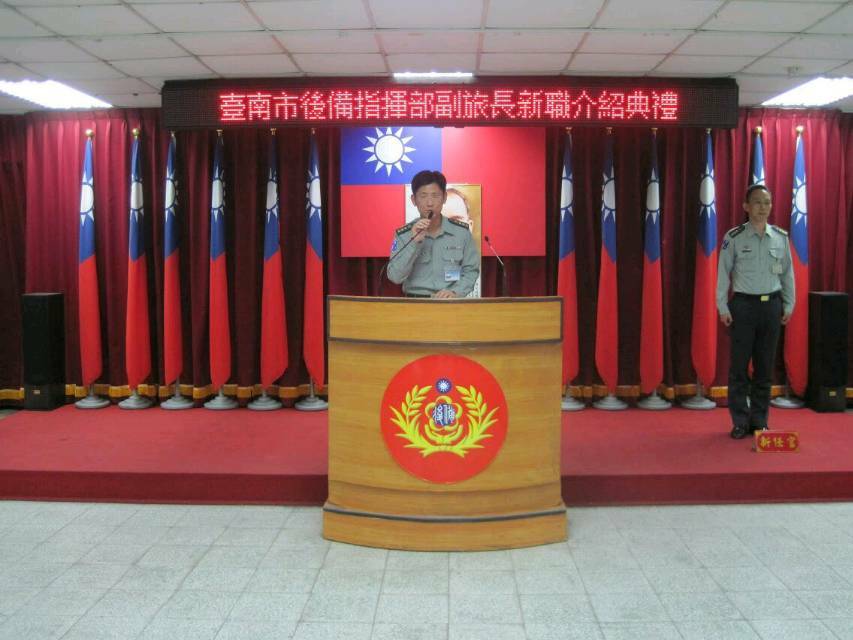 【記者于郁金/臺南報導】臺南市後備指揮部王之聖指揮官日前假長榮營區講堂主持新任副旅長林志堅上校新職介紹,由政戰處長莊中校、參謀主任段中校、各業務主管以及單位官兵與會,場面簡單隆重。