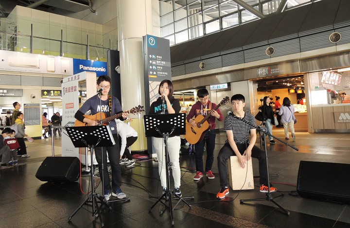 【記者于郁金/連凱斐/臺南報導】四男一女大孩子因為音樂而相遇,他們相信透過音樂的力量,能夠為生活壓力與煩悶找到出口,就在聖誕節前夕,這群成大研究生組成的樂團,在高鐵臺南站熱情開唱,團員們全力以赴,將校園活力帶進高鐵臺南站,默契絕佳的合音樂聲,縈繞在車站大廳,帶給過往旅客充滿青春氣息的音樂饗宴,旅客們紛紛拿出手機全程攝影,並不時隨著樂團哼唱,透過這場演出,成功為旅客創造音樂零距離的感動。
