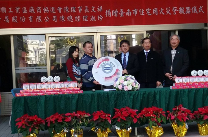 【記者于郁金/臺南報導】廷億金屬公司總經理陳淑玲、和順工業區廠商協進會理事長陳文祥姊弟,秉持熱心公益、回饋鄉里理念,捐贈1500個住宅用火災警報器,希望提升民眾居家防火意識。這種警報器不必接電線,只要裝電池,電池壽命長達10年,使用很方便。