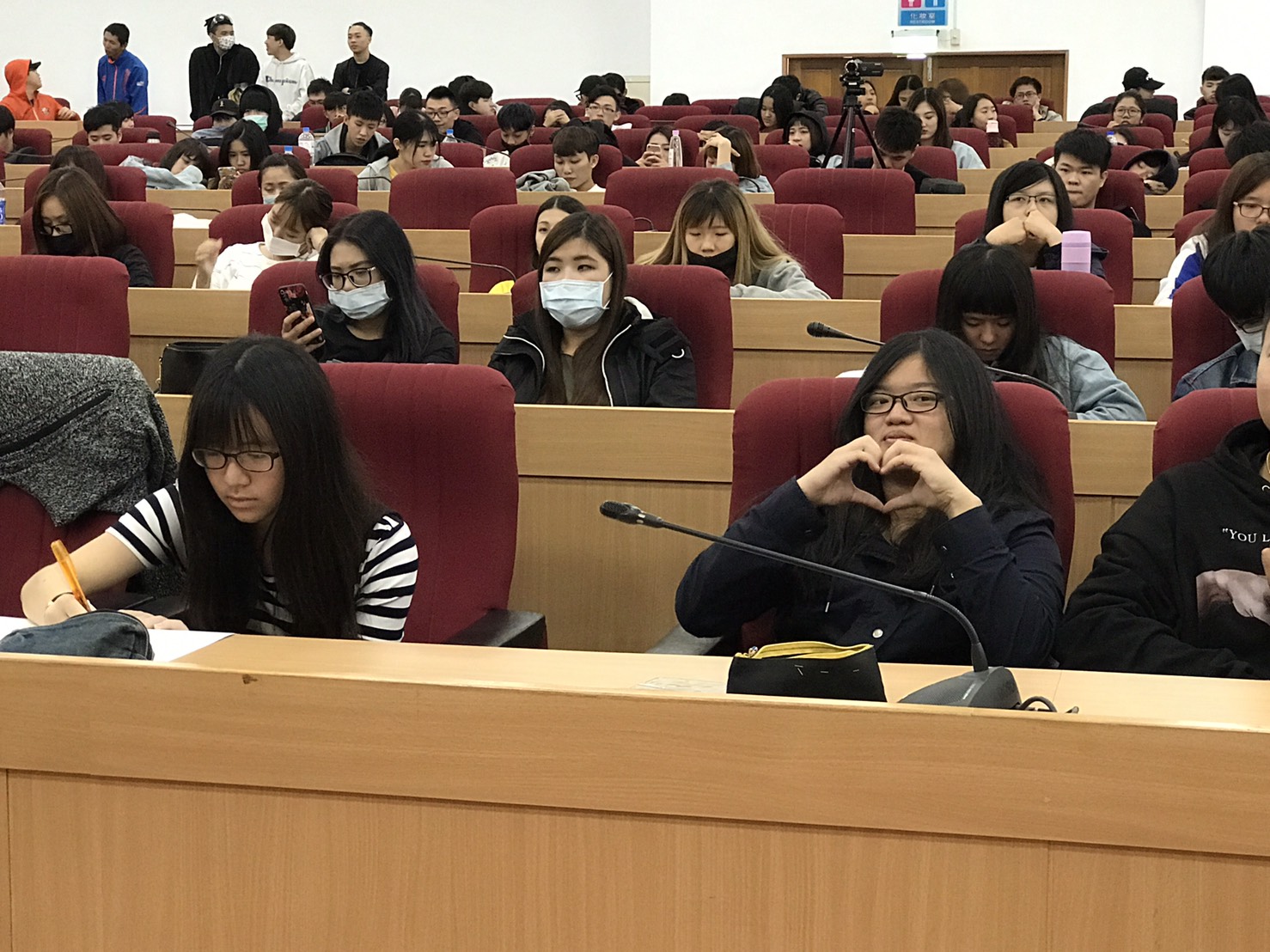 【記者于郁金/臺南報導】遠東科技大學流行音樂產業管理系12月26日邀請到遠東科大榮譽教授澎恰恰,暢談自己的音樂人生;爆滿的同學把遠東科大9樓國際會議廳,擠得水洩不通,還有其他系的同學寧可站在最後一排,也要爭相旁聽「澎恰恰教授」講課,澎恰恰直呼第一次當教授很不好意思,同學不要有壓力,大家一起「玩中學」。