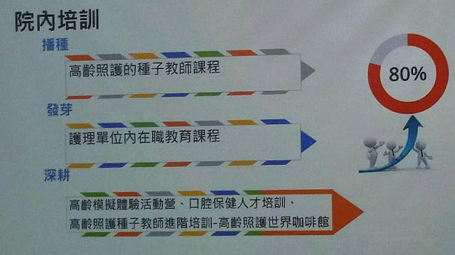 護理師是第一線臨床照護者,除需具備內外科疾病的專業照護知能外,更需擁有足夠的高齡照護能力,以提供高齡病人周全的照護。成大醫院表示,本院護理部於2016年開始培養高齡照護的種子教師,並推廣至各單位,院內護理同仁上課率達8成;同時也分享及推廣高齡照護理念,與臺南市護理師護士公會合辦高齡照護培訓課程,規劃MOOCs線上教學課程,提供免費學習,設計App互動教學軟體推廣高齡照護,期能將高齡照護理念與實務散播到各地,提升高齡照護品質。