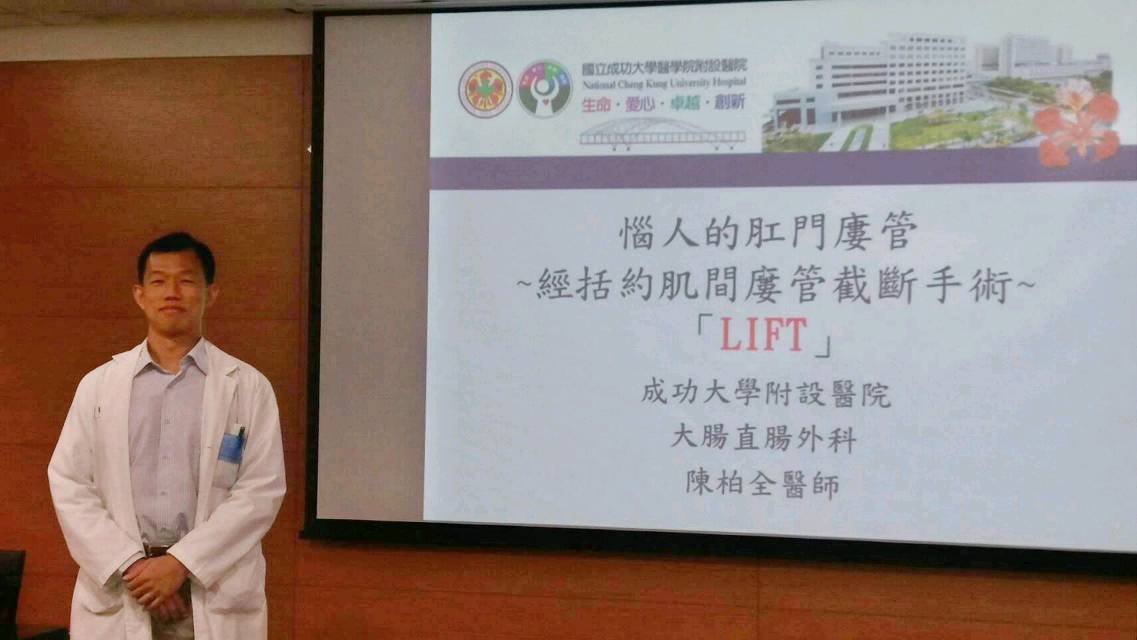 成大醫院大腸直腸外科陳柏全醫師說,這名病人罹患的是肛門瘻管,後來以「經括約肌間瘻管截斷手術(LIFT)」治療,病人術後隔天就出院,配合規則回診,傷口約在1個月後完全癒合。